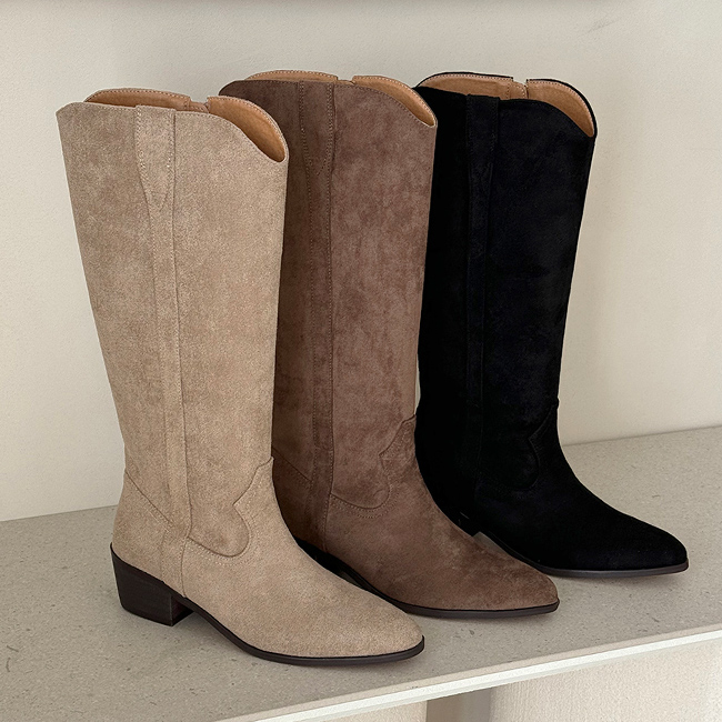 베이던롱 스웨이드 웨스턴 스틸레토 롱부츠